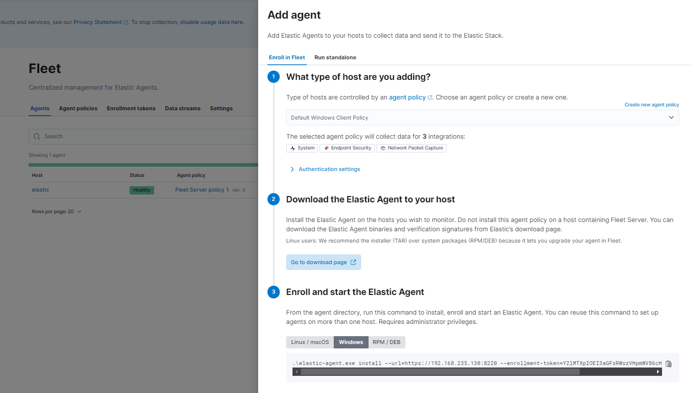 I have experience installing Elastic Cloud on Kubernetes (ECK) using AWS Elastic Kubernetes Service (EKS). But I have never tried a manual install on a server. These are the instructions I ran to get Elasticsearch and Kibana up and running with HTTPS enabled between Kibana and our browser. With the introduction of Elastic Agents, I also provided instructions on setting up a Fleet-server as well as a fleet-managed Elastic Agent on a Windows VM to start collecting logs. Personally I think I would prefer setting up Elastic with Docker, and perhaps I’ll add to this guide to include Docker installation later. But for now I just wanted to try a bare metal install of an Elastic Stack. To mimic installing, configuring, and accessing an Elastic Stack on a server via a cloud provider or anywhere really, I thought it would be beneficial to setup my own server on a VM to test the waters. If you would like to follow along with testing this on an Ubuntu Server VM, you can follow the guide I created here