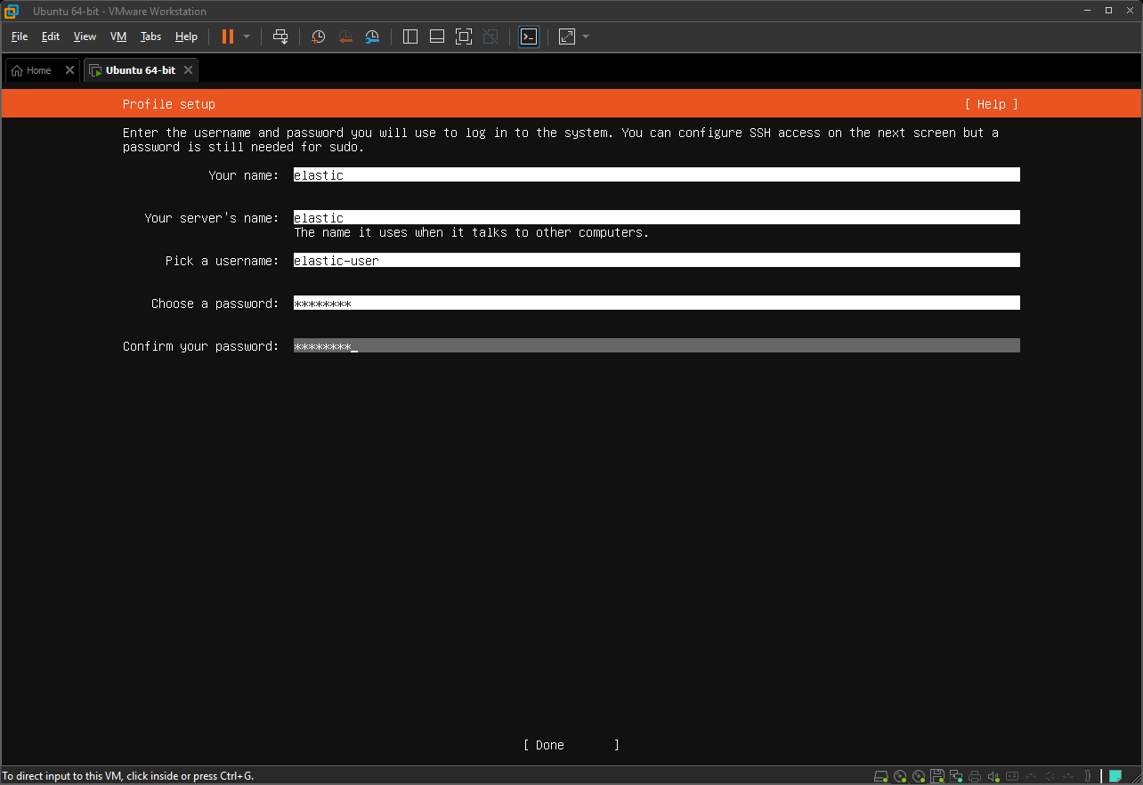 Here’s where the “Easy Setup” wizard should’ve used the information you provided it, but clearly it doesn’t. Perhaps it’s for a normal Ubuntu installation and not for the server install. Anyways just fill in the information again and click Done.