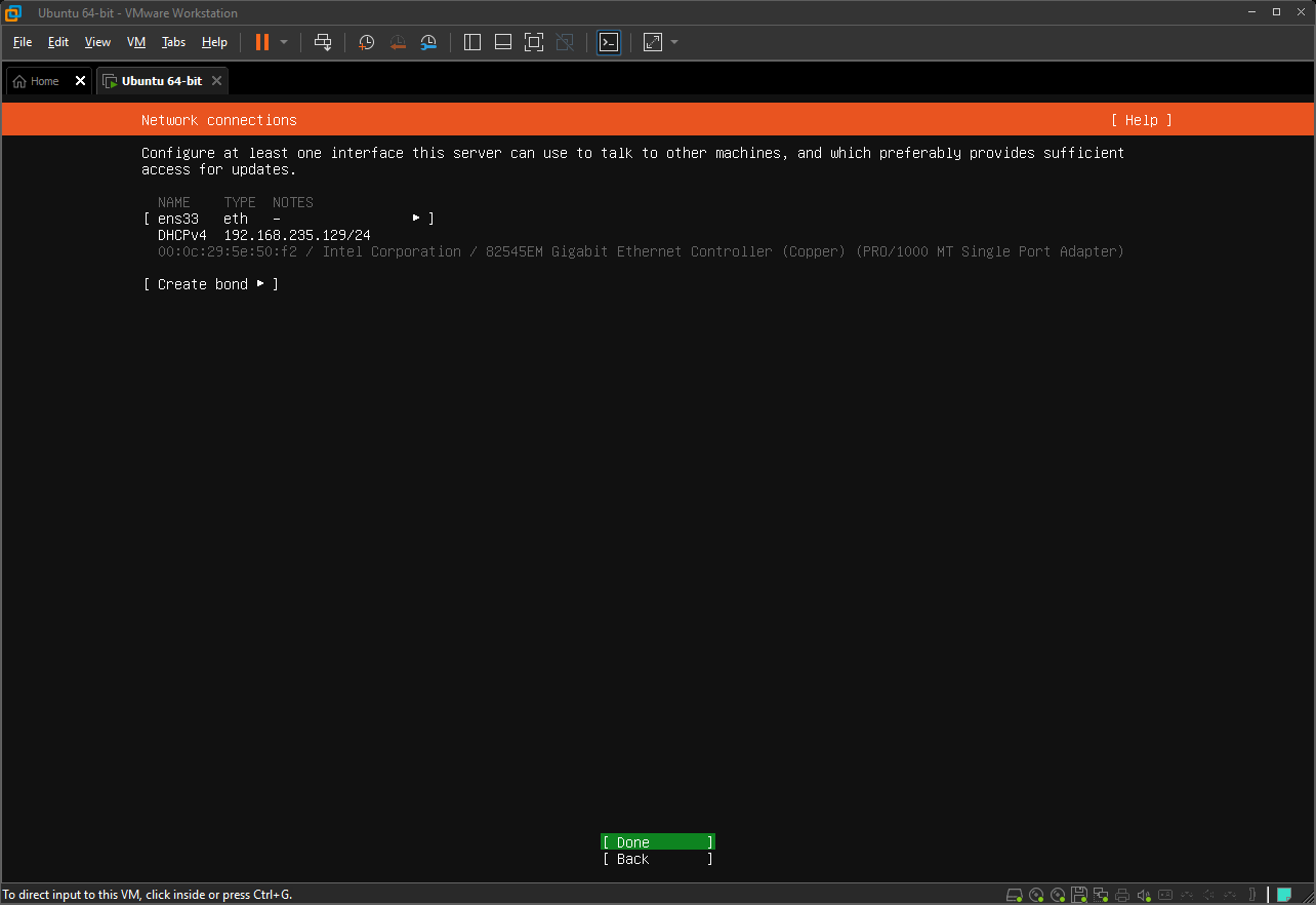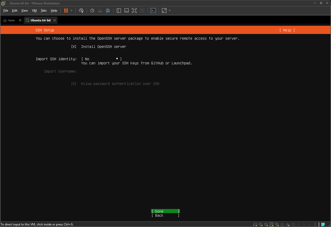 Open up a terminal on your host machine and attempt to SSH to the server using the IP of the server. I’m using WSL on Windows Terminal You should be able to successfully SSH to the VM Ubuntu Server