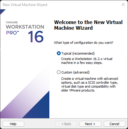 Using VMware Workstation, we “Create a New Virtual Machine”